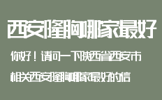 西安整形美容文章:西安隆胸醫(yī)院 經(jīng)典網(wǎng)教你如何選擇簡介:西安隆胸醫(yī)院哪家好?愛美的你如何在眾多的西安隆胸醫(yī)院中找出最好的那家呢?這是一門繁瑣的活,同時(shí)技術(shù)含量也很高!讓經(jīng)典網(wǎng)教你如何在眾多魚龍混雜的西安隆胸醫(yī)院中找出最好的那一家吧!,為您提供西安整形,西安整形醫(yī)院,西安隆胸醫(yī)院,隆胸醫(yī)院,西安隆胸,西安隆胸醫(yī)院哪家好,隆胸,假體隆胸等咨詢