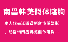 本人想去江西省新余市做整形,想咨詢南昌韓美假體隆胸怎么樣?的相關(guān)信息,及時(shí)了解信息的,幫忙!