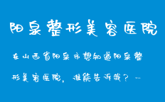 ![]() 陽(yáng)泉整形美容提供的陽(yáng)泉永久脫毛價(jià)格,為您提供陽(yáng)泉整形,陽(yáng)泉整形醫(yī)院,陽(yáng)泉整形專家,陽(yáng)泉整形價(jià)格,陽(yáng)泉永久脫毛價(jià)格,激光脫毛價(jià)格等咨詢