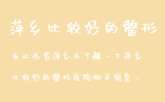 萍鄉(xiāng)比較好的整形醫(yī)院 在江西省萍鄉(xiāng)市了解一下萍鄉(xiāng)比較好的整形醫(yī)院相關(guān)信息,知道的留個(gè)答案,謝謝萍鄉(xiāng)口唇整形價(jià)格,萍鄉(xiāng)整形美容,為您提供萍鄉(xiāng)整形,萍鄉(xiāng)整形醫(yī)院,萍鄉(xiāng)整形專家,口唇整形價(jià)格,萍鄉(xiāng)豐唇價(jià)格,萍鄉(xiāng)厚唇變薄價(jià)格,萍鄉(xiāng)…
