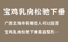 寶雞整形美容關(guān)于寶雞乳房下垂懸吊的文章,為您提供寶雞整形,寶雞整形醫(yī)院,寶雞整形專家,寶雞整形價(jià)格,寶雞乳房下垂懸吊等咨詢 |