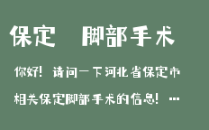 ![]() 保定整形美容關(guān)于保定祛大腳骨手術(shù)價格的文章,為您提供保定整形,保定整形醫(yī)院,保定整形專家,保定整形價格,保定祛大腳骨手術(shù)價格等咨詢