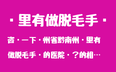 咨詢一下貴州省黔南州凱里有做脫毛手術的醫(yī)院嗎?的相關資訊,請專業(yè)人士回答,急!