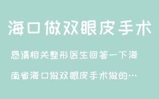 懇請相關整形醫(yī)生回答一下海南省海口做雙眼皮手術做的比較成功的咨詢問題類別項目單位價格備注說明優(yōu)惠眼部整形價格雙眼皮手術價格雙側(cè)800-3000元視手術方法不同申請優(yōu)惠>>…