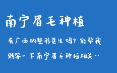 ![]() 南寧整形美容關(guān)于南寧眉毛種植的文章,為您提供南寧整形,南寧整形醫(yī)院,南寧整形專家,南寧整形價格,南寧眉毛種植等咨詢